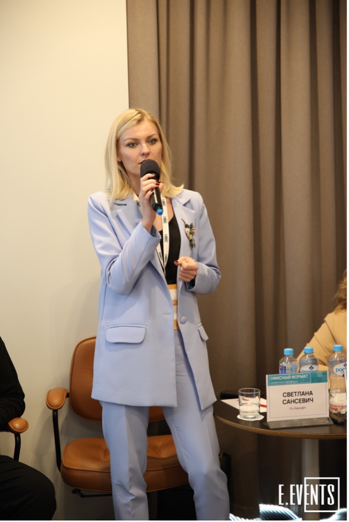 Ольга Носаль, начальник отдела продаж Healthy Office, обратила внимание аудитории на вопрос человекоцентричности офисного пространства и на то, как обстановка на рабочем месте влияет на вовлеченность сотрудников. По словам спикера один из инструментов формирования высокого уровня вовлеченности в офисе – создание эргономичной и подвижной среды. Проект Healthy Office направлен на улучшение рабочих условий для сотрудников офисов и благотворно влияет на все сферы жизни и здоровья людей. «Healthy Office — это и мебель: эргономичные столы, кресла, баланс- борды, и акустические кабины, которые очищают и насыщают воздух кислородом, и приложение для отслеживания и статистики активности», - отметила эксперт многогранность проекта.
