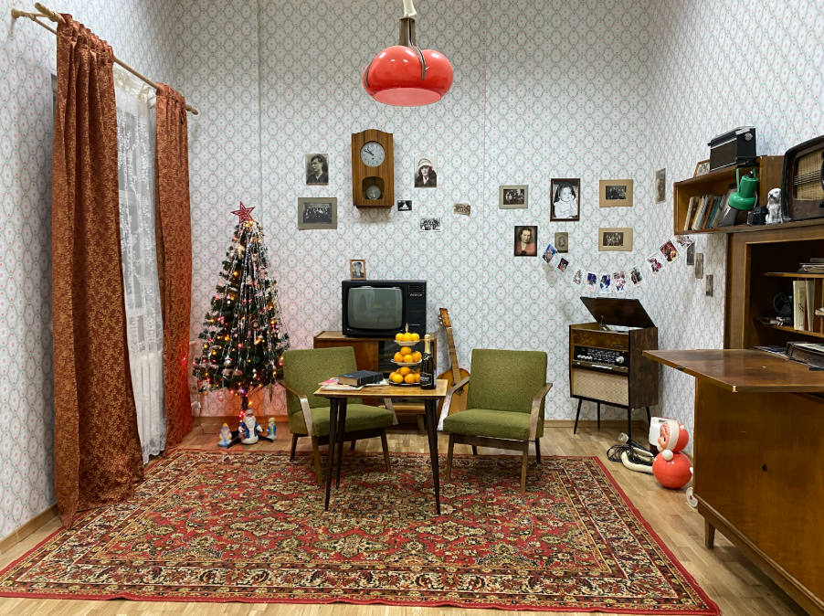 Вот, например, изба – это целый музей деревенского реквизита, собранных и привезённых из деревень наших родных и близких клиентов. Клиенты часто привозят нам старые вещи. Так, например, появилась наша декорация советская квартира.