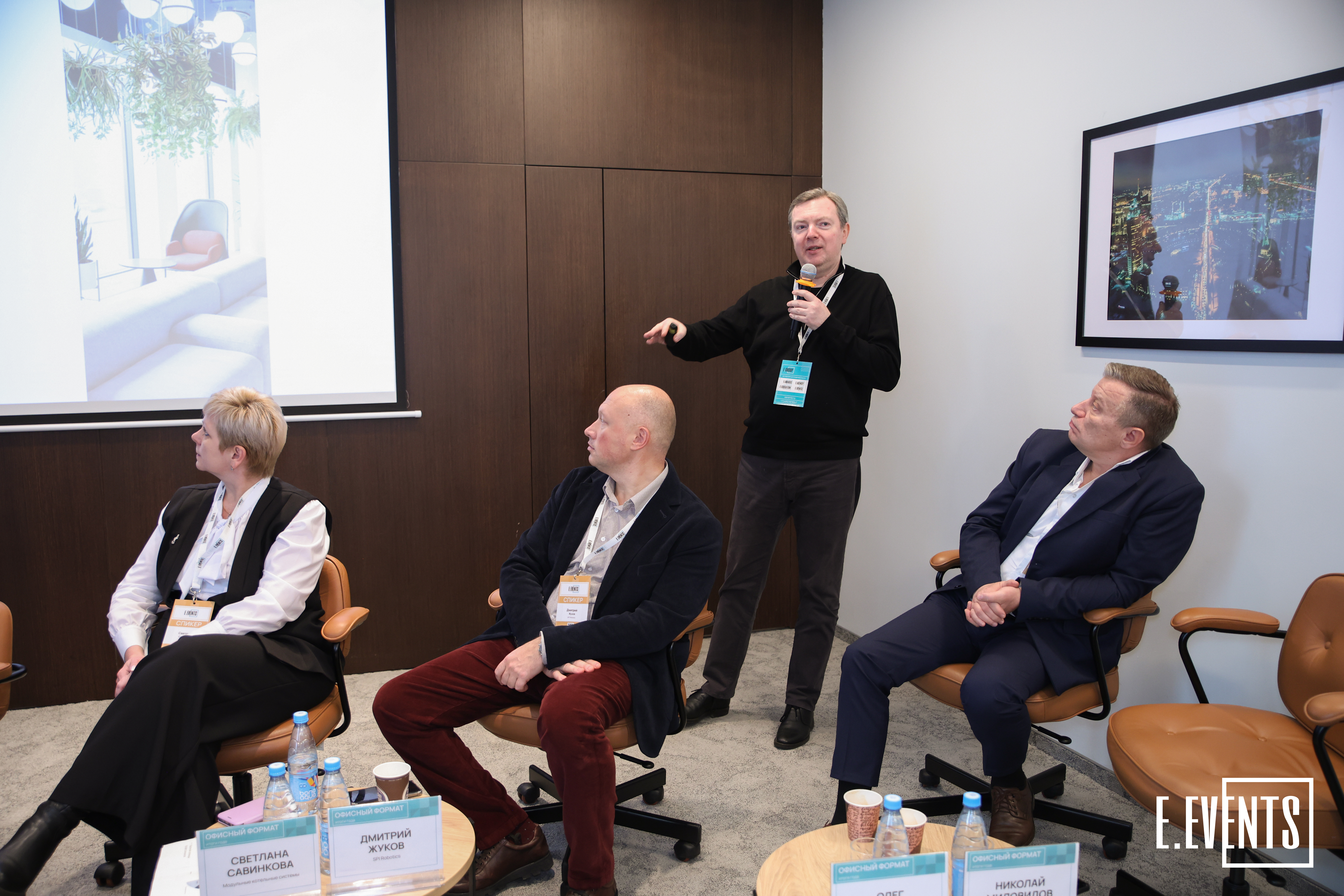 Управляющий партнер архитектурного бюро AQ Николай Миловидов в своем выступлении рассказал об эволюции корпоративного дизайна и о том, как офис влияет на восприятие бренда и поведение сотрудников. Он отметил, что московские офисы часто являются эталоном качества, сравнимым с европейскими, благодаря вниманию к деталям и функциональности.